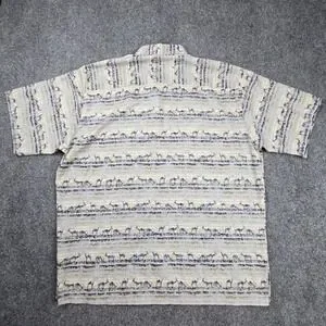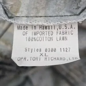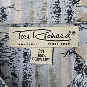 Stylish vintage Tori Richard shirt in size XL, crafted from signature 100% cotton lawn, printed in Japan, and sewn in Hawaii . Features an elegant antelope/gazelle motif in subdued tones of gray, beige, and black. Lightweight, breathable, and perfect for resort or everyday wear. Excellent pre-owned condition with no visible flaws.