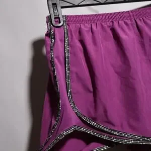 Nike Dri-Fit Purple Shorts Running Lined Black Hem Side Vents Womens L 80s Vibe