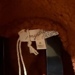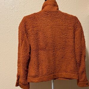 Cozy teddy jacket by Mystree. Features a rich rust color. Ideal for layering and warmth.