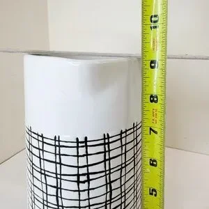 Pier 1 Imports Retired Ceramic Pitcher MCM Retro Off White Black Cross Hatch