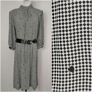 Vintage 80s Emerald St Womens Black And White Checkered Midi Dress Classic