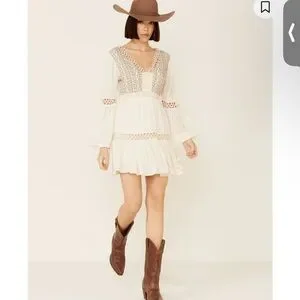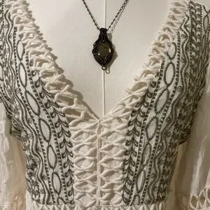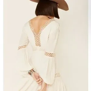 SHYANNE WOMEN'S OFF WHITE EMBROIDERED LACE PEASANT DRESS size small