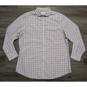 Charles Tyrwhitt Men's Pink Blue Checkered Non Iron Slim Shirt Size 17.5-35