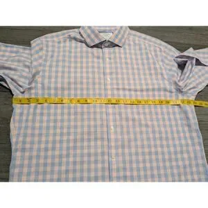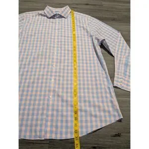 Charles Tyrwhitt Men's Pink Blue Checkered Non Iron Slim Shirt Size 17.5-35. Very Good Used Condition.