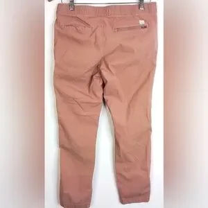 Stylish Vuori cargo pants in a soft pink hue. Features multiple pockets and a comfortable fit.