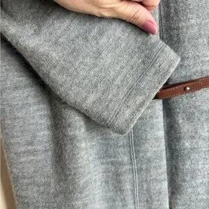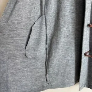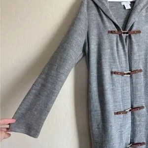 Elevated and timeless, this Kenar longline wool-blend jacket is a chic outerwear staple with a touch of equestrian charm. Designed in a soft heather gray, this coat features a hood and unique faux leather strap-and-toggle closures down the front for a refined, riding-inspired look. Also has pockets which are still sewn closed