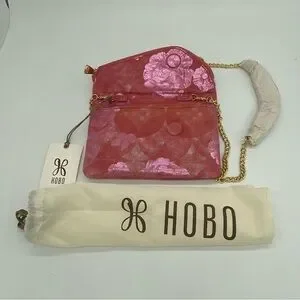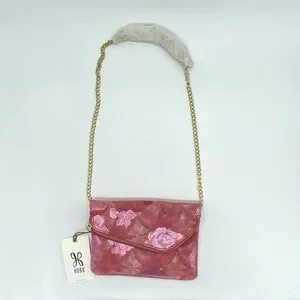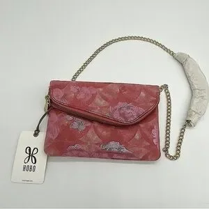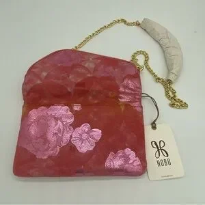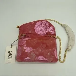Hobo Daria Sunrise Floral suede leather Embossed Metallic Pink Flowers Crossbody