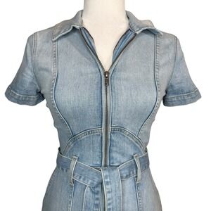 Alice + Olivia Jeans Blue Denim Mini Dress Size 2 Zipper Front Pockets Belted