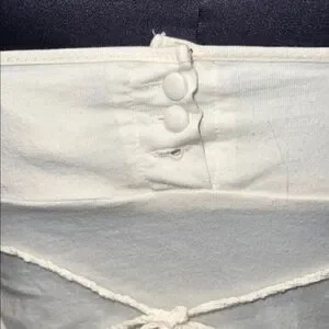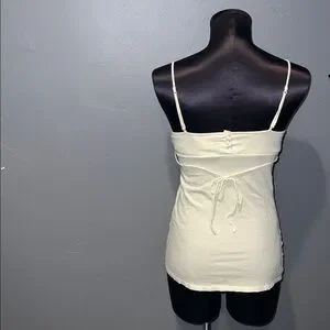 American Eagle outfitters off-white top with thin adjustable straps. Thin back tie with e buttons featured on the back and hook & eye clasp closure. Shelf bra built in. Comfortable and flattering. Preowned, in overall good condition. Except features 1 missing button on the back, which I’ve featured in the photos. Not very noticeable and easily can be fixed by replacing a new button if you want but u really don’t need to in my option. Other than that 1 flaw, top looks good. Lots of life left!