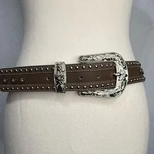 Brown Studded Belt with Silver Buckle