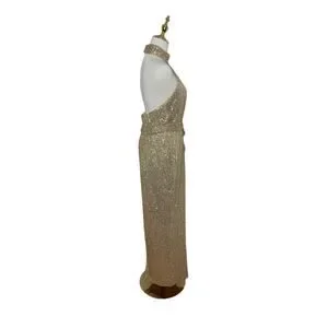 Mac Duggal 11281 Champagne Sequined Halter Neck Belted Tie Dress Size 4 $298