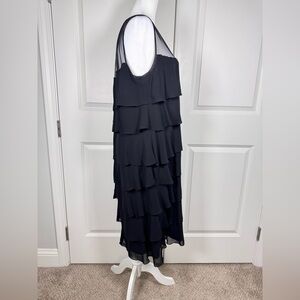 Patra Tiered Chiffon Formal Cocktail Dress Illusion Neck Wedding Guest Sz 16