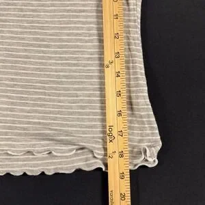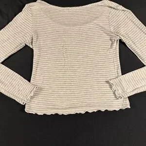 Olivia Rae Grey White Striped Scoop Neck Lettuce Edge Long Sleeve Top Small