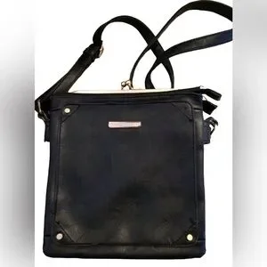 VINTAGE Women’s Black Leather Crossbody Handbag/Purse with Kiss-Lock Top