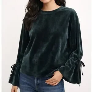 Philosophy Velveteen Bell Sleeve Top Womens Medium Green Soft Whimsigoth Fairy