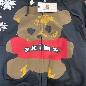 NWT Cactus Plant Flea Market Skims Collaboration Size Large Black zip-up hoodie with teddy bear