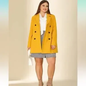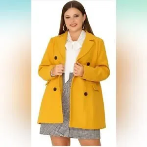 Agnes Orinda Women's Plus Size Notched Lapel Double Breasted Long Coat 4XL