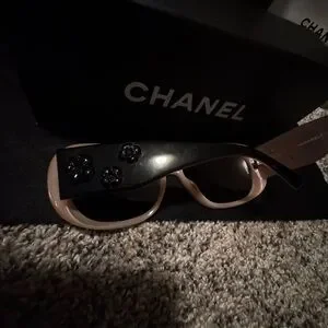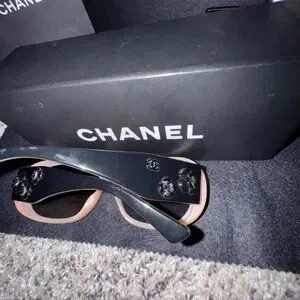 These CHANEL sunglasses feature an oversized square frame in a striking black color, complemented by gradient pink lenses. The elegant design is enhanced by the visible CHANEL branding, making them a luxurious accessory for any occasion. These are preowned they do not come with a case, but they do come with the box that came with them. They will be wrapped before shipping and I can include a different sunglasses case with them. The original Chanel one broke so I have a white Michael Kors case that I used to store them in that I can include with them.