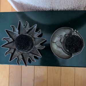 set of 2 metal sun and moon tea light candle holders in excellent condition.