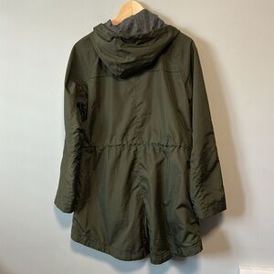 Dark green outer shell with grey soft lining