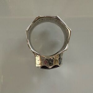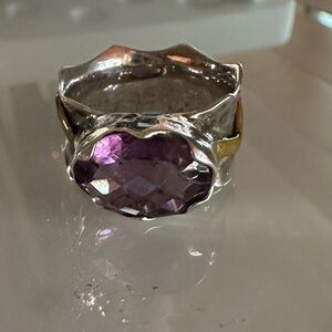 Arya Design Signed 925 Sterling Silver Gold Amethyst Hammered Boho Ring Size 8
