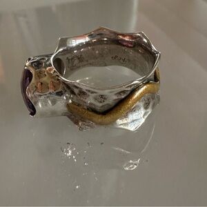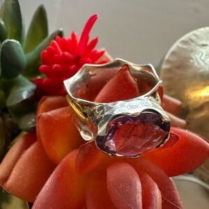 #AryaDesign #SignedJewelry #AmethystStatement #MixedMetalRing #ArtisanSilver