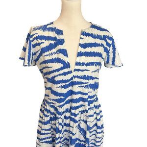 Oliphant Dipsy Midi Dress Blue White Block Print Cotton Resort XS