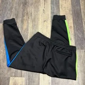 Puma Mens Track Pants XL Black Green Blue Stripe Joggers Athletic Sweatpants