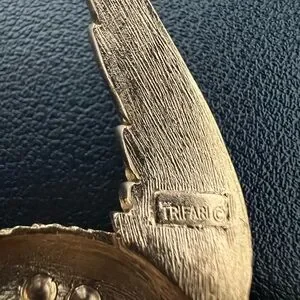 Signed Trifari Golden tone Bird Brooch with Red Eye Accent