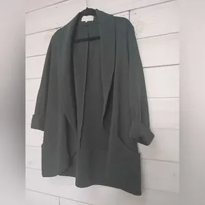 Stylish dark green open front blazer. Perfect for layering.