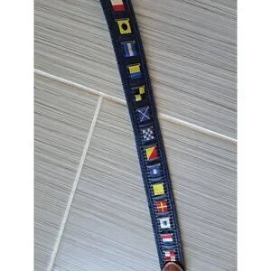 Leather Man Ltd Nautical Flag Belt Leather Trim Brass Buckle CT Mens 40 Maritime