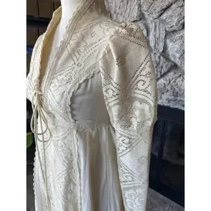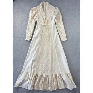 Vintage Gunne Sax Dress Size 7 Crochet Lace Corset Prairie Cottagecore Wedding