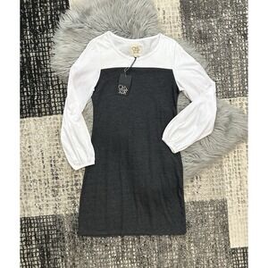 CHASER Charcoal & White Colorblock Long Sleeve Super Soft Mini Dress Medium NEW