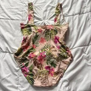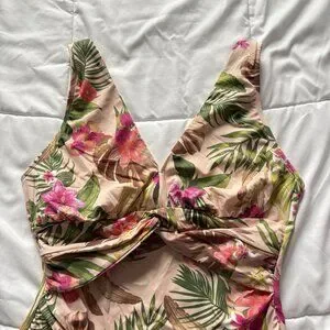Womens Floral Pink Green One Piece Bikini Swimsuit Summer Beach Resortwear