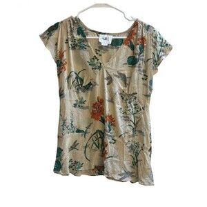 Anthropologie 2000’s Y2k Dragonfly Floral 100% Silk Top Boho Fairycore Sz 6