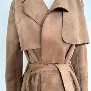 Chic light-brown/tan coat by H&M. Features a stylish belt and classic design. Size Medium and only worn once.