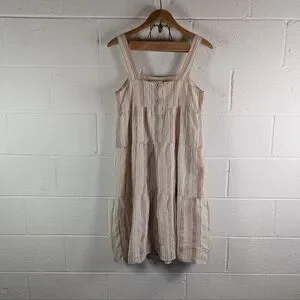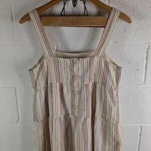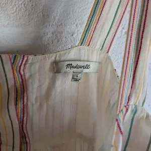 Madewell Dress Womens 4 White Ivory Rainbow Stripe Tiered Button Back Midi
