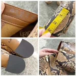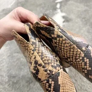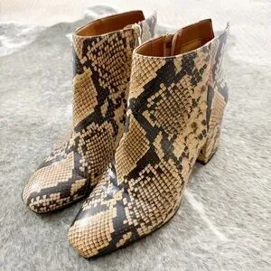 Here’s a super cute pair of booties by Franco Sarto. These are the Trudy booties in a fun faux reptile snakeskin pattern. Size 8.5. Great shape and nice quality pair of shoes. Perfect to add some fun to your wardrobe. :)