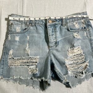 Bleach USA Distressed Denim Shorts | Size 4 | Raw Hem Rebel