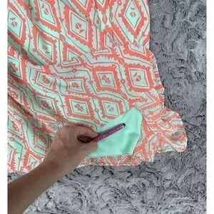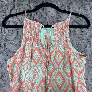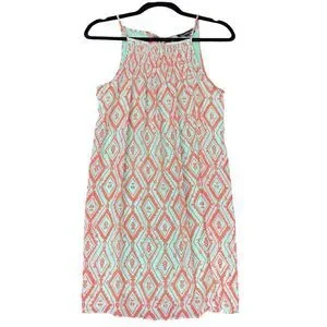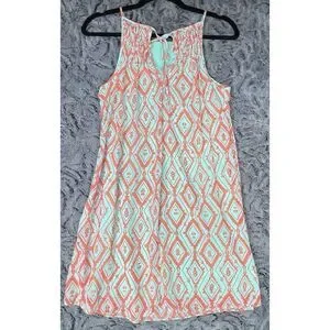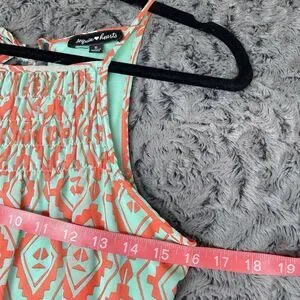 Sequin Hearts Dress Womens Size Small Orange Aqua Smocked Boho Indie Unique Alt