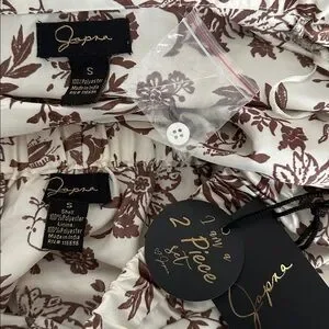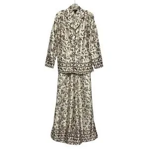 Japna Floral Toile 2-Piece Satin Pajama Set Lounge Wear Brown & Cream Size Small