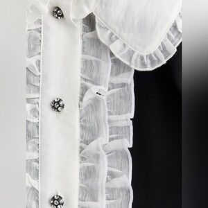 Short, long-sleeved dress in woven fabric with a Peter Pan collar and rhinestone-embellished buttons at the front. Frill trims in a sheer weave around the collar and along the button placket. Unlined.