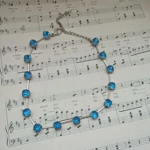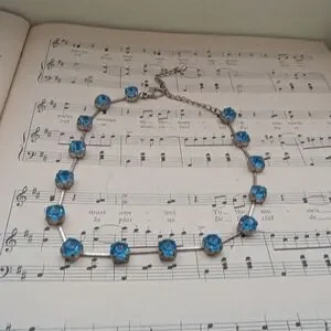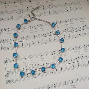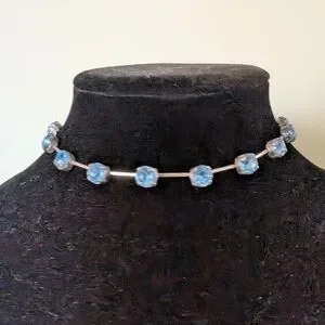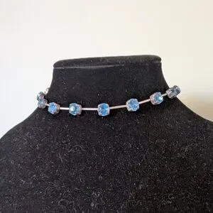 This stunning choker necklace features elegant blue stones, perfect for adding a touch of sophistication to any outfit.