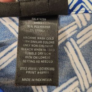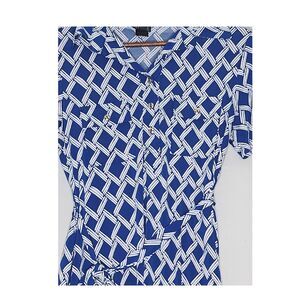 EnFocus Studio Blue & White Geometric print Soft pull over V neck and button front Dress Size 10