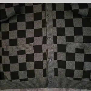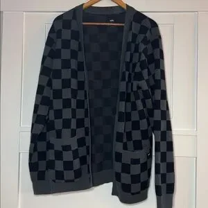 Classic Vans Cardigan in charcoal and black . Soft and versatile. Ideal for layering.