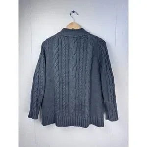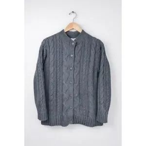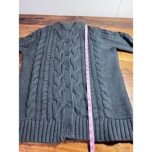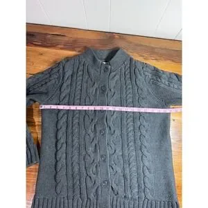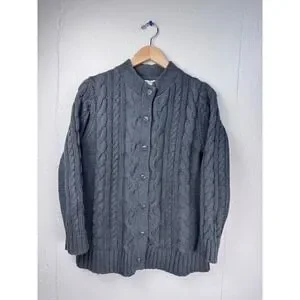 LL Bean Cable Knit Cardigan Women's Large Gray 100% Cotton Full Button Front