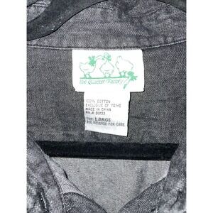 The Quacker Factory Shirt is a comfortable and stylish women's button-down shirt in size Large. It features a solid gray color with embroidered accents, a collared neckline, long sleeves, and a casual sleeve type. Made from cotton with a down fabric type, this vintage-inspired shirt is great for travel, casual wear, or workwear. The oversized fit adds a trendy touch to the classic button-up style from The Quacker Factory brand. Ideal for those looking for a versatile and cozy addition to their wardrobe.