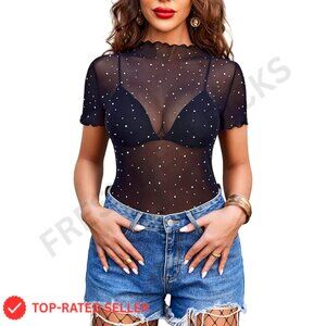 Brand new, never worn, and in flawless condition — this sheer mesh top delivers a sparkly, eye-catching look perfect for a night out, a party, or adding a touch of glam to casual wear. The fit is classic and comfortable, with a lightweight, stretchable feel.
