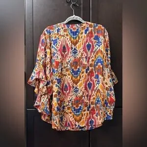 Bold pattern with ruffled sleeves. Ideal for casual wear.