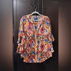 Vince Camuto Colorful Ruffle Sleeve Blouse
